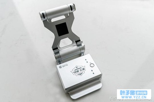 吃鸡王座X1采用了可折叠的设计,折叠后除了厚度之外大致相当于一个大屏手机的大小,打开后可以看到机身上有一个支架,不管是智能手机还是平板电脑都能够稳稳的架在上面,机身的折叠处有2个旋钮可以用来调节支架的角度,无论是喜欢平视,还是俯视玩游戏都能根据自己的习惯来调整到适当的位置支架起手机或者平板电脑。