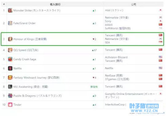 同样的问题还体现在营收上,据App Annie数据显示,在2018年1月App Store全球收入排行榜中,《王者荣耀》下跌两名,排在《怪物弹珠》和《FGO》之后。要知道在此之前,《王者荣耀》已经连续10个月拿下App Store全球收入榜Top1。