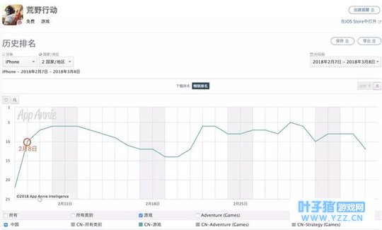 2017年业内最大的趋势基本上可以说是吃鸡游戏爆发,去年3月底发布的《绝地求生》凭借病毒传播一路走红,至今仍是Steam畅销榜冠军。去年年底,国内大厂纷纷祭出了吃鸡手游,动辄数千万量级的dau和数亿下载量让所有人为之一振,但海外分析师曾担忧其收入潜力。 最近,据海外手游分析公司Sensor Tower预测,网易此前发布的吃鸡手游《荒野行动》今年2月份的海外收入比1月份翻了4倍,2月全球总收入突破2400万美元(折合人民币1.5亿元)。