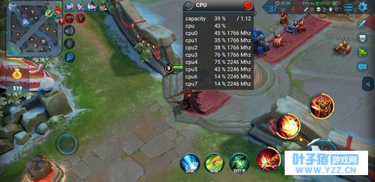 现在我们再通过实际游戏测试,来看下它的真实表示究竟如何。 王者荣耀王者荣耀大概是近几年来最火的一款手机游戏了,它对手机性能的要求并不苛刻,很多千元机也能比较流畅地运行。不过,如果把画质特效调到最高,并开启高帧率模式,此时再想满帧流畅运行的话,还是比较困难的,我们就以这个模式来测试下三星S9+在运行王者荣耀时的表现。 首先,在手机默认模式下,骁龙845的八颗核心都会启动,在游戏的大部分时间里游戏帧率可以达到55帧以上,非常流畅。 但是,在部分比较复杂的场景下,帧率还是偶尔会掉到50帧以下。