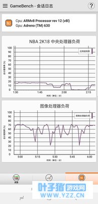 从GameBench的测试数据来看,三星S9+上的骁龙845的GPU在运行这款游戏时的调度存在一定问题,应该是导致不能满帧运行的主要原因。在十分钟的游戏过程中,Adreno 630的负载波动非常大,导致GPU性能不能完全释放。