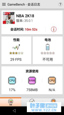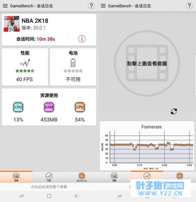 NBA 2K18以上几款都是用户数量众多的主流游戏,对性能最强大的安卓机皇来说自然不在话下。而作为处理器杀手的NBA手游系列,则更能反映出骁龙845的性能极限。 在实际测试中,我们还是画质调到最高、特效全部开启,为了直观地测试其流畅度,我们还通过GameBench来监测它实时帧数。 从最终的结果来看,在运行十分钟NBA 2K18后,它的平均帧数为40帧,距离60帧满帧还有一定差距。