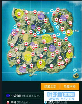 图1 好了,端正心态,进入飞行阶段准备降落区找武器了。对于不擅长射击心态不稳怕的一匹的女性玩家,我为你们准备了一份荒野行动资源分布图。(图1) 什么?你玩终结者?一样一样,不管你玩哪个吃鸡手游,资源分布图都会有大佬共享。这些都是很有用的线索。当然给你这份线索就得好好利用了,那么第二个生存守则:你看到的物资集中人多的地方千万别去!很多朋友落地成盒的原因基本就在争夺物资中GG,对于操作不熟练的你还是就飘去没人的小村庄狗着稳妥。即使在野外偶尔遇到一两个人还是有机会和大兄弟硬碰硬的。