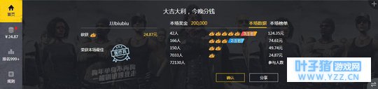 吃鸡玩家们那么想开通充值系统,不知光子工作室怎么回应呢?如果开通之后,又能看到一大波人民币玩家了,但毕竟这还是个正儿八经的生存游戏,和大神们秀技术带妹子飞才是王道!从3月12日开始,YY举办的“百万鸡王”正式上线,每晚8点半到10点半之间吃到鸡的玩家,都能参与瓜分500万元奖金,100%能分到钱,活动结束时还可以提现。