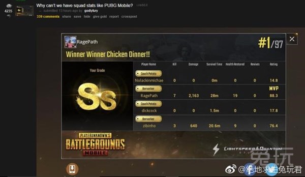 在海外上线后,Reddit论坛上一个名为“为什么PC端不能像手游一样显示四排队友的数据呢”的帖子成为了最热讨论帖!