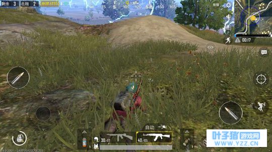 第二种情况,就是这种荒草局,生命圈里没有藏身之处,别慌,这里也有技巧,首先你要做起伏地魔,趴在草丛藏起来,其次是最关键的,大家可以看到图中的界限,你要毫不犹豫地爬到生命圈的边界,背对着边界,这样你既减去了背后的危险,也可以将自己的视野扩到最大。 怎么样各位看官,你们有没有更好的观点,大家一起分享下哈! |