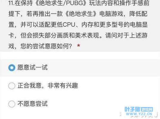 腾讯发布问卷调查,锋芒直指《绝地求生》 如果我是蓝洞公司与腾讯公关部的接洽人,我想我此刻的心情一定极为复杂,前几个月还对我热情款待的中国腾讯公司,现在 也开始“高冷”了,他们居然还在自家的网站上对玩家发起了“是否愿意尝试其他吃鸡游戏?”的问卷调查,友谊的小船说翻 就翻了吗?