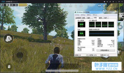 游戏流畅度 总体情况:我们在游戏中体验游戏流畅度,并且在只打开模拟器进行游戏(只有一个进程)时查看CPU占用率。经过对比发现,夜神模拟器、逍遥模拟器、雷电模拟器在运行游戏时CPU占用率较低,游戏中也少有出现卡顿的情况,网易mumu和蓝叠模拟器处于中等水平,但在游戏中都有出现卡顿的现象,腾讯手游助手占用率是最高的,但是卡顿情况并没有网易和蓝叠严重,而且画质表现良好。雷电模拟器和腾讯手游助手在游戏进行中仍然能保持较高帧率运行。 网易mumu:CPU占用率50到60