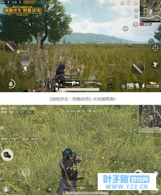《荒野行动》中的枪支及护甲 不光枪械外观的质感,在玩家所关心的战斗手感上,《绝地求生:刺激战场》也保持了不错的水准,枪械后坐力并非虚拟的晃动,而是根据不同枪械有着不同的设计:AK后坐力高,子弹向上和向侧边偏移严重,需要倾斜下拉摇杆压枪;Scar-L稳定性好,适合点射,对压枪要求不高......子弹打在头部、驱干、四肢的伤害判定各不相同。令人惊喜的是,手雷的抛物线轨迹很准,不仅会显示手雷的爆炸时间,还能实现高抛、低抛这样的高阶玩法,不像同类手游中的装饰雷,在《绝地求生:刺激战场》,你可以肆意发挥你高超的扔雷技巧。 值得一提的是,《绝地求生:刺激战场》装备显示界面非常细致,对背包的等级及容量、护甲的等级及破损度都有展示。相较同类产品中单调的装备界面,玩家能对自己的人物情况有更直观的了解。 不知道之前大家在玩《荒野行动》时有没有趴在草丛中也常常被敌人发现的经历,稀疏的植被和树木使得手游中的伏地魔、LYB就 像一个静止不动的靶子,任人宰割。但在《绝地求生:刺激战场》中,你可以完美隐匿自己,游戏里动态的阴影和实时光照效果逼真,透过树叶的阴影不只是一个黑 色的色块,而是有着明暗间隔的斑驳影子,人物身上也会根据阳光的照射点有着不同的光影变化,趴在草丛中,你可以随时给那些“小聋瞎”一个惊喜。