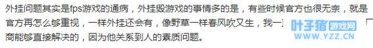 任何一款FPS都有一种通病,那就是外挂。我们玩吃鸡无非就是想跟好友跟对方来一场真正的决斗,你来外挂,是在瞧不起我嘛? 反观厂商的做法,其实他们已经很尽力去抵制这种不良风,但无奈这种野草生命力顽强,除不尽。对于外挂,就像上面截图所说的,这是人品问题。