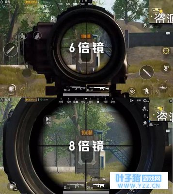 从对比图中可以看出,3倍镜和4倍镜的镜头范围基本一致,瞄准2倍镜的镜头范围要明显小上不少。 所以在中距离实战中3倍和4倍效果相差不大,4倍镜优势在于稍远距离也能适用,3倍镜则比较吃力,如果没有4倍镜可以选择3倍镜替代,实用效果略差于4倍镜。 6倍镜
