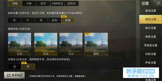 画质 选流畅,过高的画质会让你难以发现敌人,手机更容易发烫降频。 帧数 选最高选项,我这里选的是极限,流畅度提升显著。 抗锯齿 推荐打开。 【操作设置】