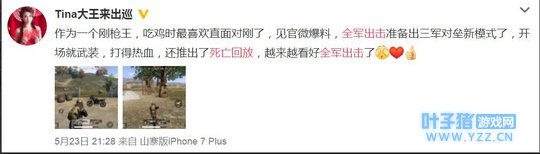 全军出击新版本更新之后,鸡友们彻底为此着迷了,游戏手感变好了,画质提高了,优化好了,最重要的是玩家们最期待的复活战正式到来了,所有玩家都将在落地的时候就已经全副武装,可以直接刚枪,高强度的竞技玩法无疑能够带给玩家更刺激的感官体验,可以说“不要怂,就是干”是新模式的本质。小编始终认为,不断创造新鲜感,注重玩家游戏体验的吃鸡手游,才是所谓的高品质手游。