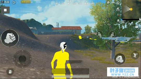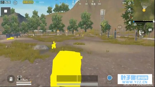 可以清晰的看到吉普车左前方有一辆两个轮的摩托车,再往正前方看,有一个黄色人形,是在训练场练枪的玩家!更关键的是,这个染色是不分掩体的,可以透过掩体直接看到对方!