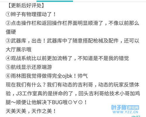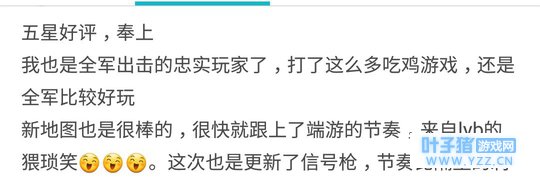 有图有真相,不仅仅是小编,玩家们也是对天美和全军出击的最新版本好评连连。全军出击的优化是越来越好了,玩家给出的游戏体验反馈也是赞不绝口,高质量的画质,创新的队友载具伤害移除等,这些都让玩家们爱上了全军出击。在此,小编希望天美以及全军出击能再接再厉,做出更多还原端游以及适配手机玩家端玩家的创新玩法。吃鸡良心手游小编我只认准全军出击,因为他只做玩家喜爱的优化,特别重视玩家的游戏体验,大家快叫上小伙伴一起去全军出击吃鸡啊! 本文来源:今日头条,作者:游戏热闻事,转载请注明来源。 |