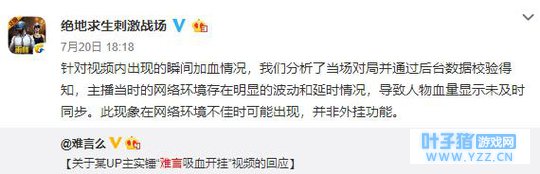 针对此事,随后刺激战场官方也做出了回应,经过分析后台数据表明当时确实存在网络波动导致血量没有及时同步,根本不是什么锁血挂。