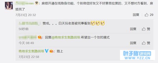 刺激战场:玩家请求光子加入在线隐身功能,官方只回复了两个字