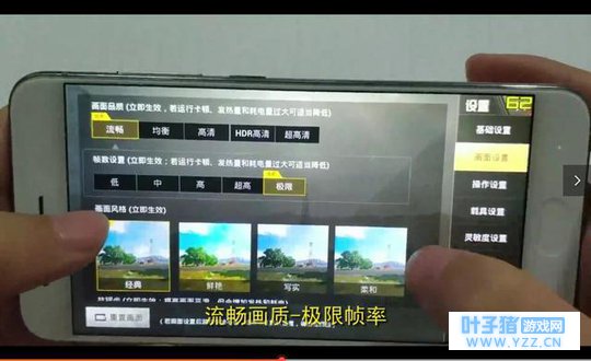 选择流畅画质-极限帧率(满帧60帧),此时可以看到帧率软件提示当前为满帧状态。