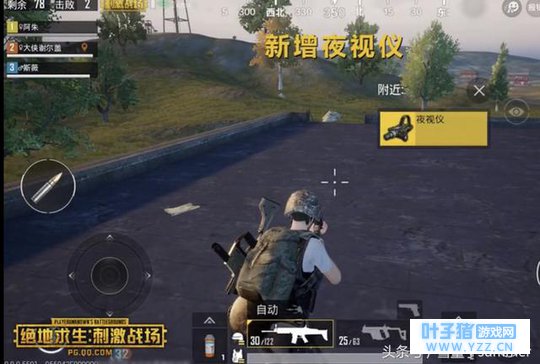 除此之外,新增的装备-夜视仪。堪称在此模式最强装备,带上他,可以自由切换开启关闭。试想一下,你眼前一片漆黑,而你的敌人能看清你的一举一动,吃鸡还是难事? 但是悲催的我是没有捡到过的,所以在这模式吃鸡也成了梦想中的晚餐!(心疼自己一秒)你们有捡到过吗?