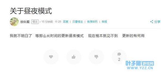 再看刺激战场,曾经吃鸡手游的王者,如今玩家基础尚在,但是口碑却大不如从前,其主要原因还是太过于还原,以至于还原到了无生趣。 当然,刺激战场的高还原还是有部分玩家买账的,可就在最近,刺激战场更新了新版本昼夜模式,原以为可以获得更多玩家的青睐,不成想却成为了诸多玩家口中吐槽的对象。