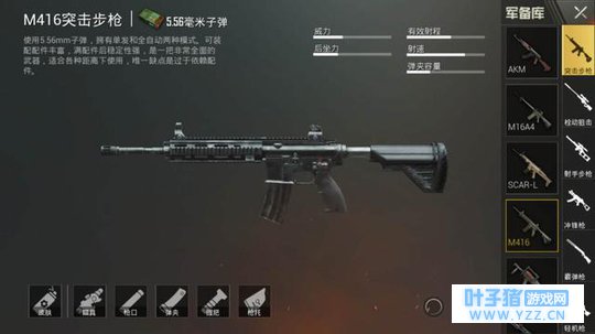 1,就先来介绍玩家心目中的第一神枪M416,这把枪的优点很明显,就是后坐力低,同时可搭载配件多,满配的情况下,扫射几乎不用压强,伤害也不俗,中距离对枪可以说是毫无压力。缺点也有,就是远距离伤害不够,近距离伤害没AK高,但对于一般熟练FPS类的人来说,近距离这方面完全可以靠反应和技术弥补。