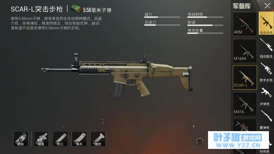 3,SCAR-L这把枪可以说是M416的削弱版,可搭载配件少,但相对于压枪不好的玩家来说也是一个不错的选择