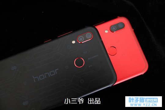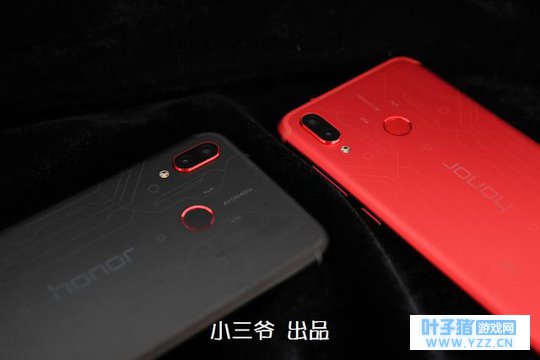 外观方面,幻夜黑荣耀Play酷玩版采用了经典的红黑CP配色,指纹键和双摄采用红圈设计;而魅焰红配色的酷玩版除了前面板之外通体红色,更加炫酷。后壳上像电路板一样的镭雕线条勾勒出内存、CPU、GPU等核心性能零件,不拘一格,科技感十足。置于中部的荣耀Logo,更令人印象深刻。