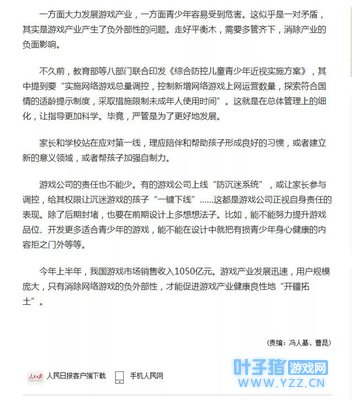 继13岁男孩沉迷网游,模仿游戏中的情节跳楼后(?)。昨天,人民日报在民生版面进行了发声。