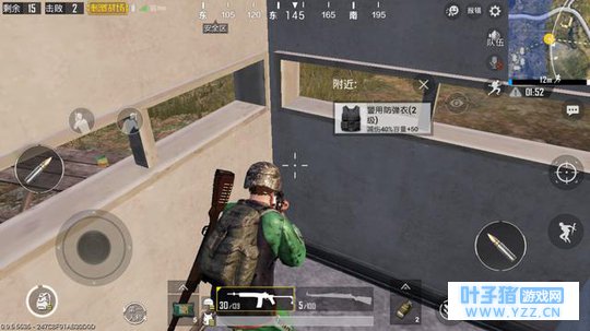 游戏刚开始,小编就想带女朋友落学校,但是技术不好没飘到,落到了宿舍楼顶,也正好人少,除了遇到些人机和单人玩家,没什么强硬的对手,小编独自解决了五个人,和女票一起瓜分着战利品。到这里,提前声明一点,落地以后,第一个圈,学校在中心偏南的位置,整个安全区刷到了五分之一的海洋。小编看着地图就决定要占据学校。海洋肯定不是安全区,安全区后面的圈一定还要缩回来。