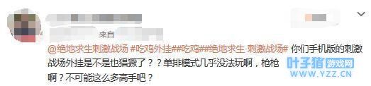 当然外挂里面也不全是嚣张的,即使开了挂,其中依然有些文艺的玩家选择比较低调的方式进行屠杀,这让很多新人一脸懵逼,“我遇到的到底是高手还是外挂?”当外挂与技巧的界限模糊后,举报这一本就羸弱的反抗手段显得更加尴尬了。 外挂的问题,玩家真的没少反映,随便搜一搜就能看到好些关于外挂的评论。