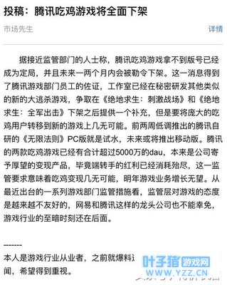 网传腾讯:“吃鸡手游”被下架!谣言还是事实?