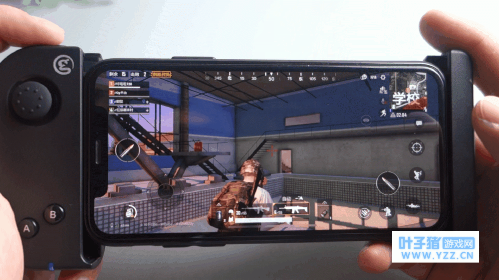 1、《绝地求生.刺激战场》 这游戏笔者刚才也已经提到过了,这款手游可以说是目前比较热门且疯狂的一款游戏,要玩好这款手游其实也是挺不容易的,尤其是在走位,射击方面非常的重要,在没有小鸡T6手柄之前,笔者就是用手机触摸操作的,触屏操作还是非常考验你的手指能力的,一边要控制角色的走位,一边又要控制角色的视角,还要一边射击、开镜等这些操作,有时候真的感觉两只手都不够用,而通过小鸡T6手柄之后,完全就是两个概念了,左手笔者可以控制走位、开枪、开镜、打开背包、服药等操作,而右手就可以直接控制视角就可以了,而不至于“手忙脚乱”了。 左手外设:走位、开枪、开镜、背包 、服药