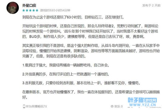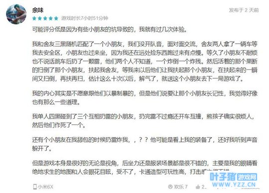 这个游戏的不足: 1.这个游戏的资源分配不太平衡,有些地方装备很多,有些地方则很少。 2.平坦的土地上,只有靠石头来掩护自己,没有草丛啦! 3.最好把子弹弹道设置为重力偏移,更写实嘛,但是又考虑到这不是一个现实画风游戏,所以这一点就无所谓了吧。 总的来说,这款游戏对手机大逃杀做出了几乎完美的答卷,可以满足大多数人的手机吃鸡欲。但是游戏地图资源不够随机,导致发育不平衡,对游戏中期影响较大。 评价香肠派对的出现对老牌吃鸡手游的打击是巨大的,尤其是荒野行动现在更是凉的只剩下人机在死撑。那众多小伙伴对它的评价又如何?