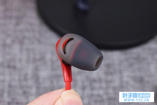 腔体顶部开孔特写 在特色耳套这里,除了人体工学佩戴舒适设计外,还有一定的防掉落效果,耳套本身安装有点像当年BOSE初代IE的鲨鱼耳套,直接扣上去就可以了,而和鲨鱼耳套不同的是,金士顿在云雀的导管上设计了一个卡扣,让耳套安装时候更加稳固一些。