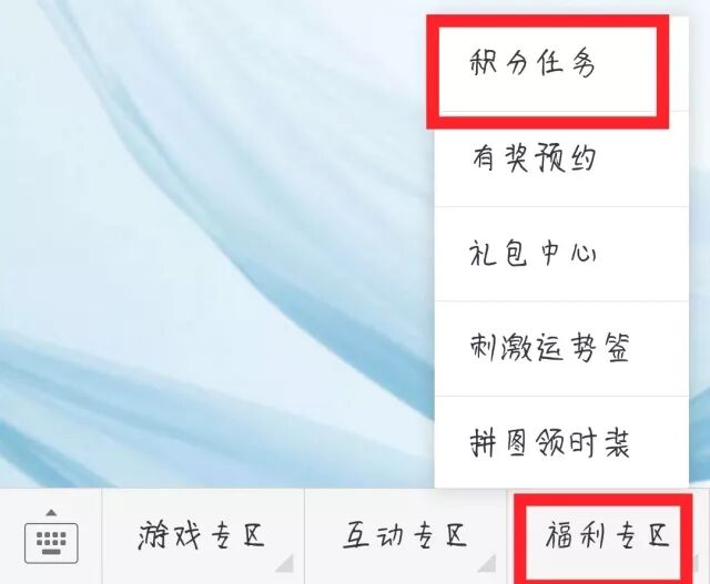 参与流程 Step1: 点击公众号底部菜单栏 【福利专区】 - 【积分任务】