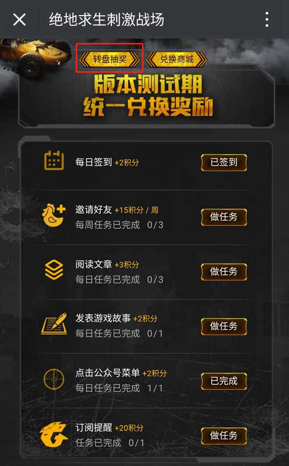 Step2: 进入下方积分任务活动页面后,点击 【转盘抽奖】 即可进入抽奖页面