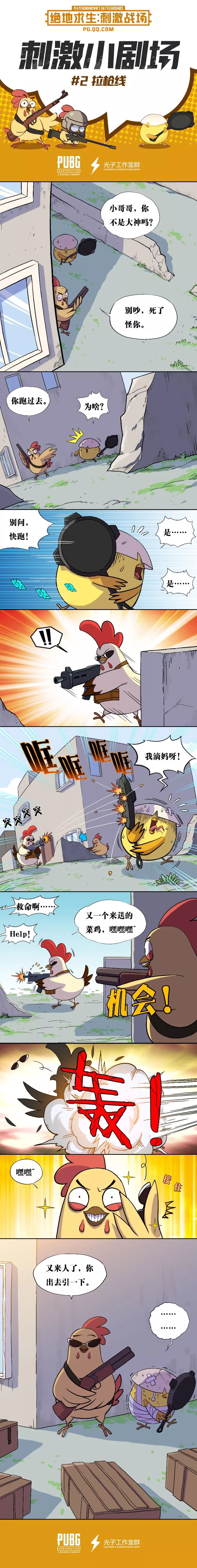 还有一个很重要的角色—— “拉枪线” 各位鸡友应该都有过拉枪线经历吧 其实“拉枪线还有一个别名——炮灰 本期,鸡仔将为大家带来 《绝地求生:刺激战场》的系列漫画 刺激小剧场第二期——《拉枪线》 带你回忆曾经做炮灰的过去