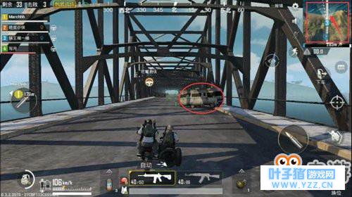 合理利用桥头尾的掩体,事先安排一到两个队友在桥头掩体附近蹲起来。因为组队模式下一般过桥都会开车走,一个是人多,另一个就是跑毒快。开车直接上桥走直线的基本上只要一个扫射压枪就能直接把车上的扫下来,用不着在桥头的队友。那如果对手是老手,会根据观察,再决定停车时机,那后面的队友就有作用了。开枪注意控制时机,尽量让对手车辆过了桥头最近的掩体,快要到桥体中间掩体的时候,桥尾队友迅速射击,这个时候,只要对手头不铁,一般都会在船体中间有掩体位置停下。而桥头的队友此时就可以趁着对手关注桥尾之际,借助桥头掩体进行射击。 |