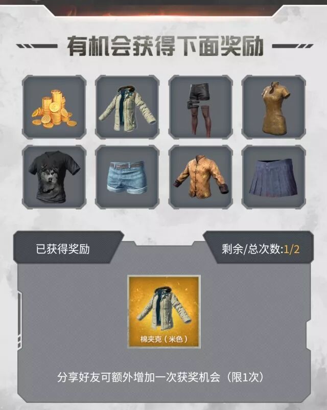 参与活动就有机会获得以下经典时装奖励,每人可以获得 2次中奖机会 哦~分享给好友还可获得 1次 额外中奖机会 哦~~