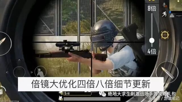 倍镜更新细节 今天给大家说说在倍镜方面要更新的几点: 第一点:我们知道8倍镜在端游中是可以滑动滚轮随意调节焦距的,而这次刺激战场手游更新后,8倍镜开镜后增加了一个调节焦距的滑动条,最低可以切换到4倍镜得焦距。