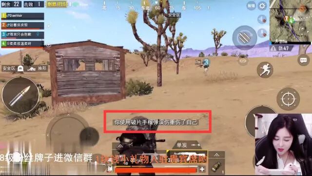 【吃鸡小技巧】 鸡友 :如何迅速找出攻击自己的目标? 柔柔 :被攻击的时候,小地图是有抢标提示的,身体上也有红色提示。被打的话千万不要停止不动,迅速蛇皮走位(左右加跳跃)躲避攻击找掩体然后确定敌方位置。如果反应慢的话,恭喜你乘坐下一波航班。