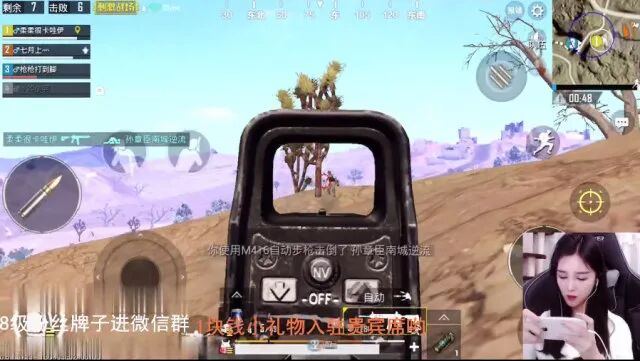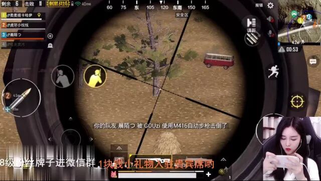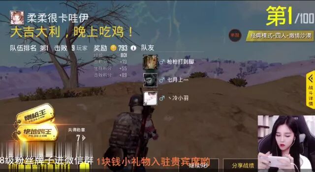 鸡友 :有没有试过开黑四个队友在交换装备的时候被人一波团灭? 柔柔 :这个不会啊,分装备的话都会在非常安全的地方比如房子里,不要在野外长时间逗留分装备就不会出现这种问题。