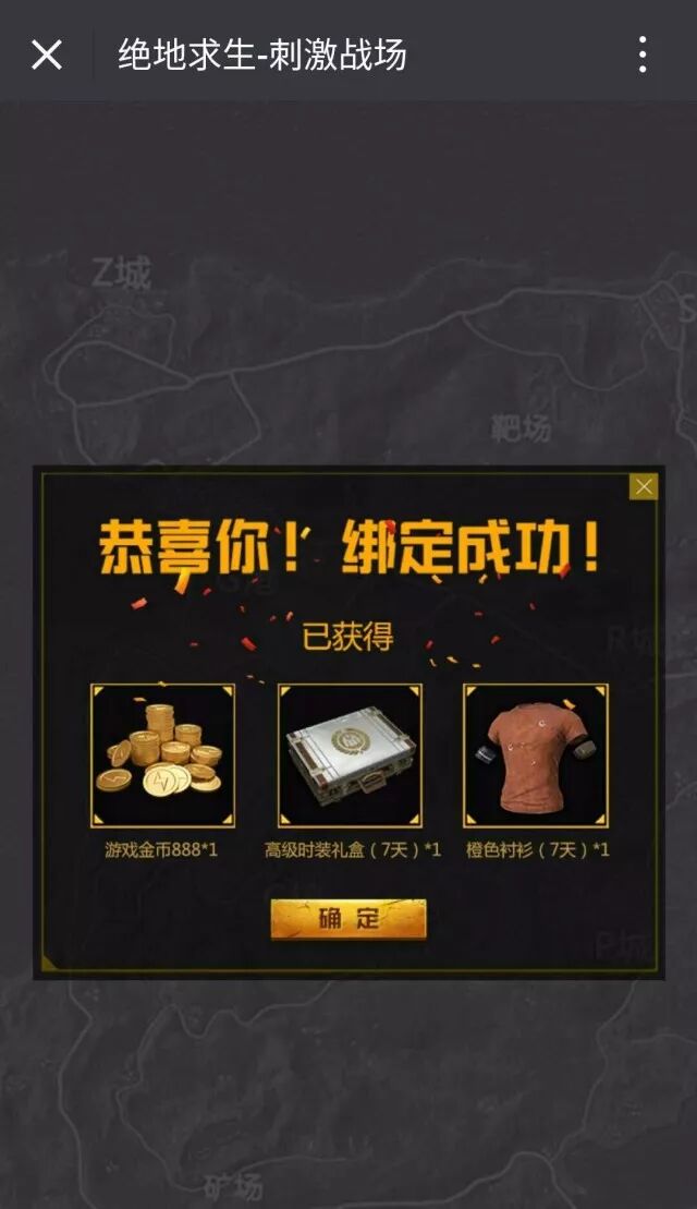 2、 绑定成功后,即可领取 游戏金币888一份、高级时装礼盒(7天)一份、橙色衬衫(7天)一份;