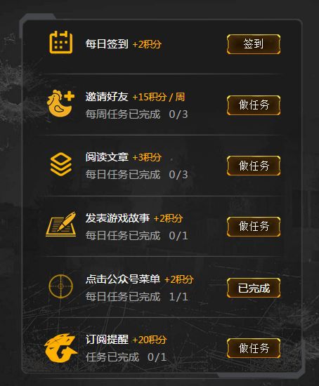 鸡友们,想获得 巨额金币 吗?想抽取 稀有时装 吗?来这里完成【积分任务】参与【签到绑定】,大把 免费福利 等你来取!