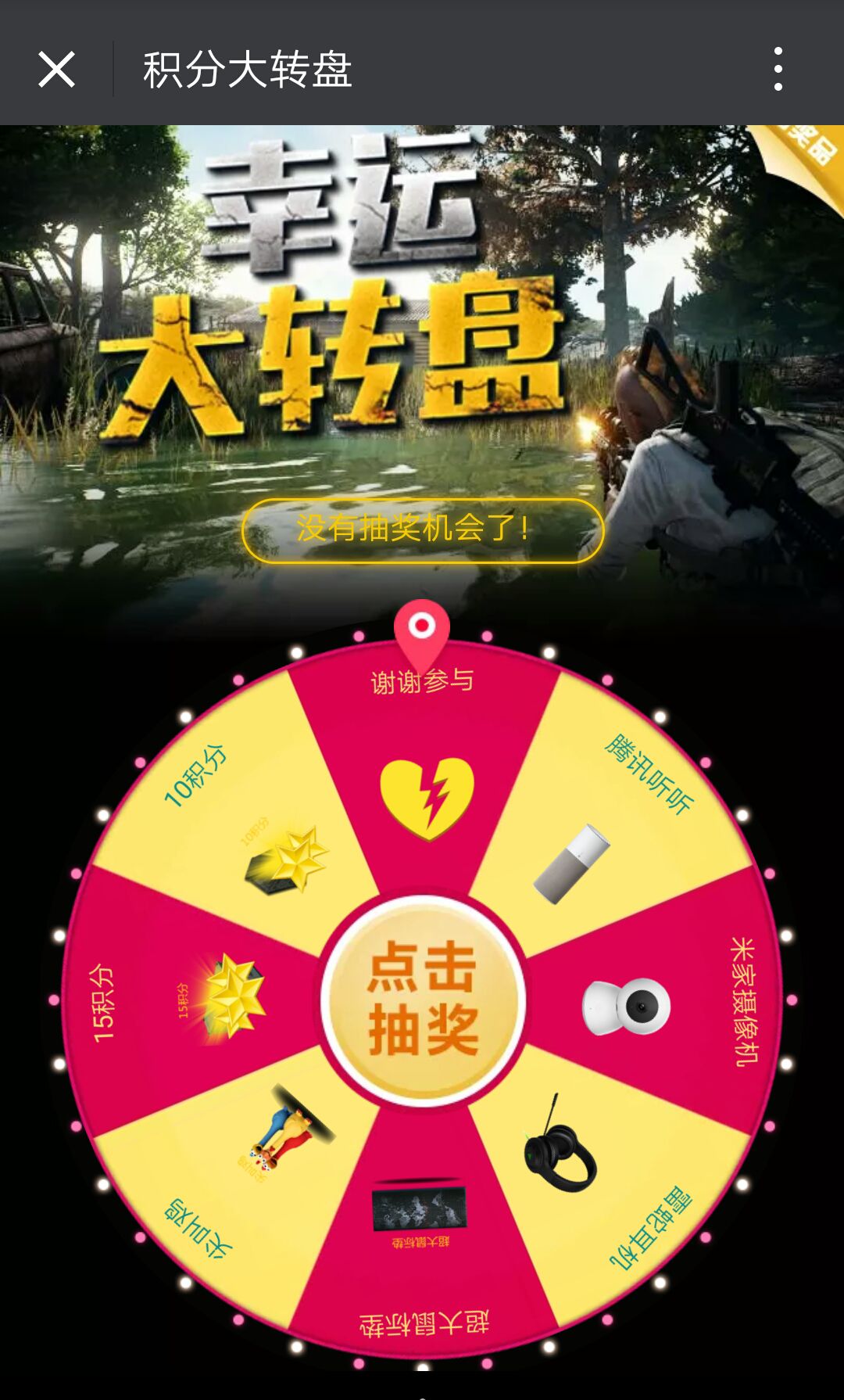 鸡友们,检测你们手气的时刻到了,来积分商城【幸运大转盘】,看看自己会抽到哪个大奖呢?