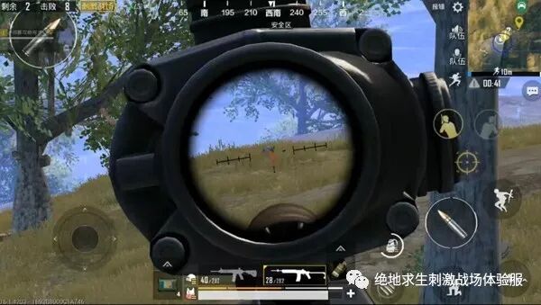 果不其然,队友在仓库位置轻松击倒对空投垂涎欲滴的目标。而后又在炮楼内成功摸到了安全区中心点的两队交火的敌人并成功击杀三人。此 开始到现在我们因为 处于安全区边缘基本没有 与任何 敌人 正面交战 。