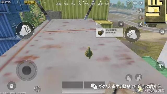 手雷刷新的地点小编目前发现了2个,一个是在从刷枪的那个地方面向靶场,一直走大概150米左右,那里有个箱子,箱子上面就有手雷和烟雾弹以及燃烧瓶。另一个刷手雷的地方就很强势了,一般人是找不到的,在靶场的中间位置,有一个特别高的铁架,手雷就在中间的一个集装箱上,下面是很多集装箱,你可以选择从第一层一直跳上去,也可以选择用手雷把自己炸上去。至于炸自己的时候,要注意把手雷扔在地上之后,站在手雷稍微往前面一点的地方,然后在手雷炸起你的时候控制方向,最后落到你想落的地点。