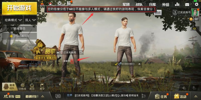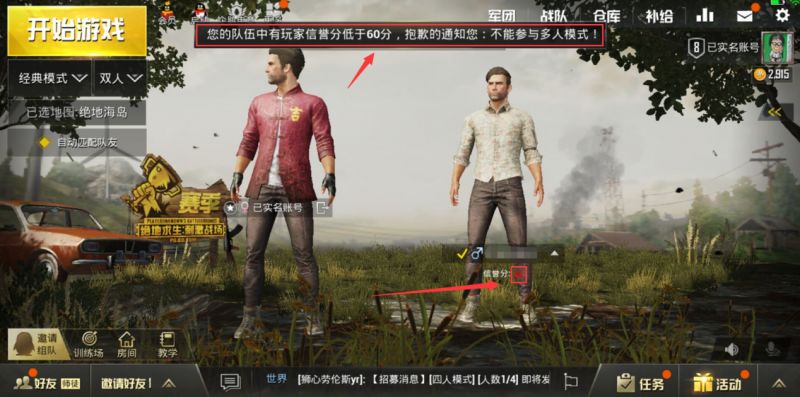 ( 注 :并且在好友房间中,队友会收到队伍玩家信誉分低于60分的通知。 )