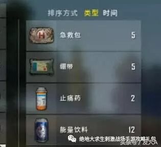 五.能量药品能量药品我个人觉的十瓶以下能带多少就带多少,能不扔就尽量不要扔,这些药品的作用我觉得特别大,不管是跑毒还是逃跑,都有很神奇的作用。决赛圈不要吝啬能量打满。