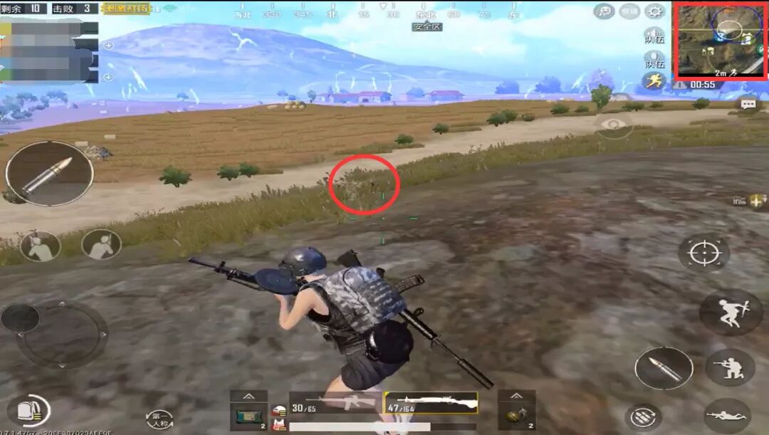重点观察可疑地形,尤其是圈边的树后,优势位置的石头下,房间的死角位置。对白花花的大腿和大胳膊或者不同草色的头盔一定要敏感。